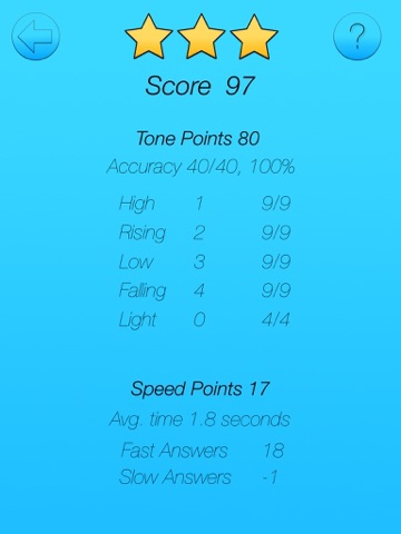 This app is a diagnostic test of tone proficiency for students of Chinese at all levels. Mastery of Tones is essential for learning Chinese. How good are yours? This free app gives you the answer in under three minutes. Take it again and again as your study progresses, until you consistently score three stars.
