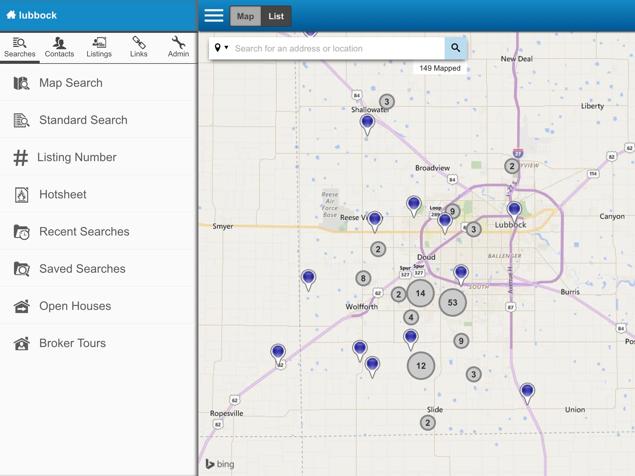 • Standard Search, Map Search, and Quick Search, plus Hotsheets showing new activity