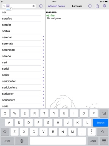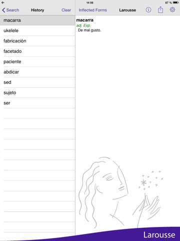 1. I should be able to tap any word in the definitions and examples to instantly look it up. 2. Please support Spain Spanish as well. 3. Add audio pronunciations.