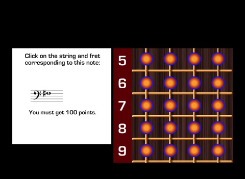 It has PRACTICAL EXERCISES on which different notes appear on the staff and you have to click the string and fret corresponding to each particular note.