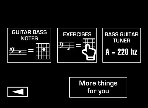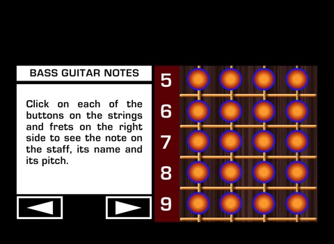 It has a LEARNING SECTION on which you can click on the strings and frets of the Guitar Bass to see the corresponding note on the staff and its name.