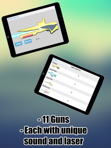 - Unique laser shot and sound for each gun. Premium mode adds dynamic sounds, new vibration & shake intensity settings.