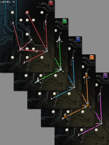 Lasers is a clever puzzle game that requires some different thinking. Laser light must be redirected to pass through all of the diamonds on the screen. Tap and drag the laser nodes around to bend the light until all the diamonds are activated. You can also use multi-touch to move two laser nodes at the same time. Some laser nodes cannot be moved. You will have to find the perfect alignment to clear the level.