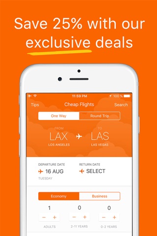 Get cheap flights fast with Cheap Flights – the world’s most simple flight search app!