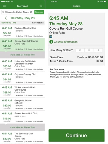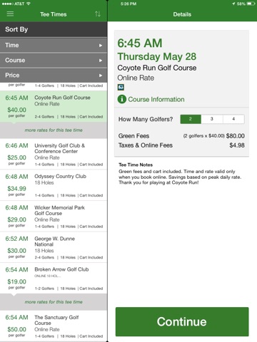 • Quickly & easily find nearby tee times using GPS or a specific location