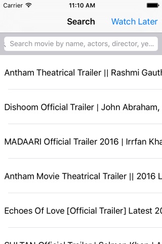 Finds Trailers realtime updated. You can browse the movie trailers by Genre, Language, Actor/Actress, Director, Release Year, Ratings and By Youtube User (Trailer Uploader).