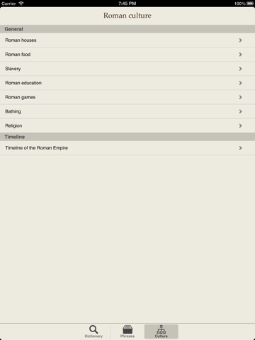 Latin-English dictionary voor iPhone en iPad. Look up words with ease, even without an internet connection! Do you have an internet connection, than you can also look at the more than 1500 Latin Phrases, information about the Roman culture and a timeline of the Roman Empire.