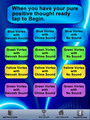 The Law of Attraction timer is optimized to help you enter the Vortex easily. The Law of Attraction timer has a mesmerizing whirling vortex that expands every 17 seconds to help focus you on your pure thought.