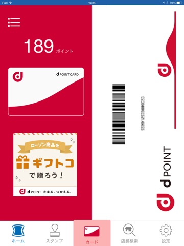 - デジタルポイントカード(Pontaポイント)も表示できます。