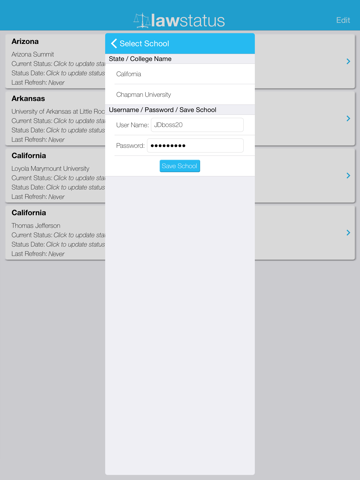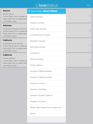 Click on each school individually and Law Status will automatically log you into your status and display the status webpage.