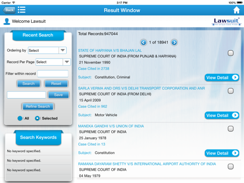 "Lawsuit - The Unique Case Finder" is the Indian Case Law Research System developed by "Levons Technologies Pvt. Ltd." Using this application user can browse latest Judgments of Honble Supreme Court of India since 1950 & All High Courts of India along with Privy Council cases since 1840. We also providing Central & State Bare Acts, Amendments with Rules, Regulations, Orders, Schemes etc. Case Laws Research System includes Topical Search, Advance Search, Full Text Search, Boolean Search, Citation Search, Bare Acts Search along with the ordering and priority search and sorting. This is perfect and unique legal case finder research system. This is one type of e-Library or digital library as you say.
