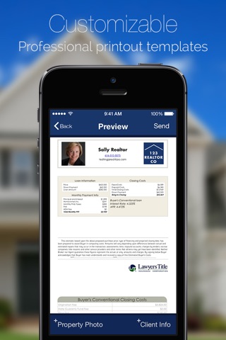 LawyersAgent ONE is a city/county specific closing cost app that comes preloaded with calculations and closing costs for Real Estate professionals. Generate quick and professional seller net sheets and buyer estimates for your clients in just seconds. LawyersAgent ONE is jam-packed with features that are sure to wow your clients! Visit lawyersagent.com for more details.