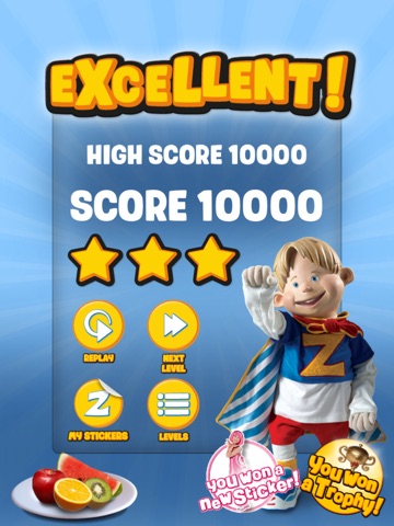 Kids will have fun moving their iPad, iPhone or iPod touch left and right to steer Ziggy towards good food like SportsCandy. After playing the game, they can navigate to the Stickers page and decorate a LazyTown scene with their favorite characters and food options.