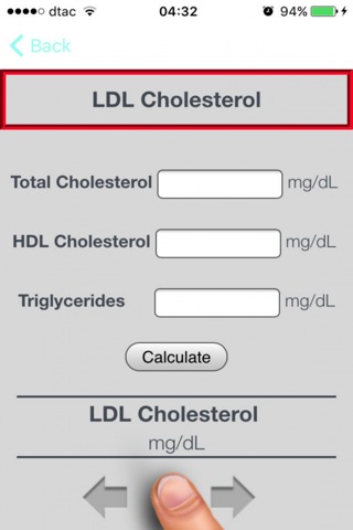This application can calculate LDL cholesterol from total cholesterol, HDL cholesterol, and triglyceride.