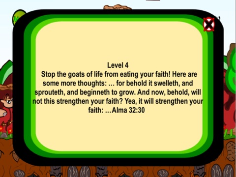 Thank you for looking at the LDS Faith Game! Play as a boy or a girl geared to protect your faith! There are 100 levels to play through! Watch your faith seed grow over time and produce fruit! Collect the fruit to win! Battle off the temperature, the storm clouds, the weeds, and the goats that try to stop you. Collect special items to help you with your mission. This game also has scriptures on each level to help you learn about faith. This original creation is part of the Go and Do Gaming Series. This game is completely free with no adds or in app purchases! You cant beat that!