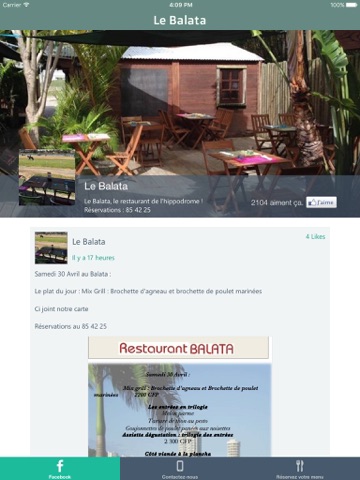 Le Balata vous propose de déjeuner dans un cadre agréable, reposant et verdoyant.