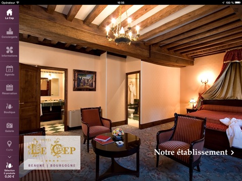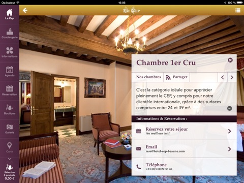 Book your stay, order room-service, order your breakfast, discover our shop, treat someone special to a gift box directly from our e-concierge application. You can also organize your stay with our interactive map, you will find all the information you need to discover Beaune and Burgundy.