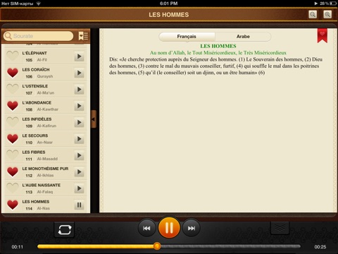 As Salamou aleykoum wa ramatullah wa barakatou. Merci aux frères et soeurs qui sont à lorigine de cette application. Elle est très bien faite hamdoulilah grâce à ça je peux écouter du Coran tous les jours! Pour les prochaines mises a jour serait-il possible de pouvoir écouter en arabe tout en ayant la lecture française? Barak Allahou fikoum pour votre travail, quAllah vous comble, vous récompenses et nous guide tous. Amin