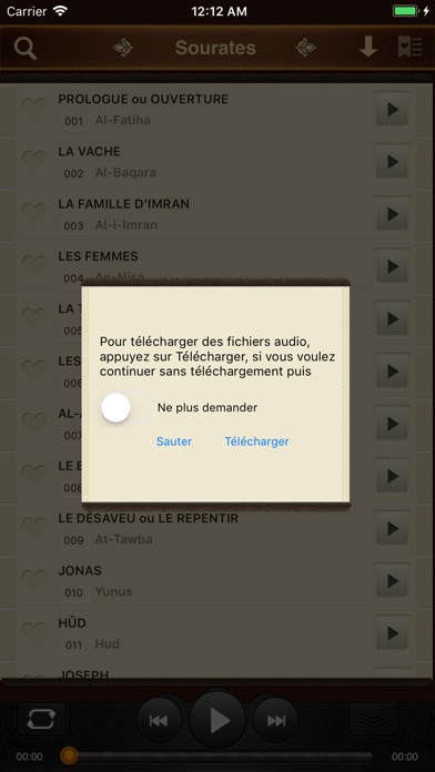 • Écoutez sourates soit un par un dans une boucle ou par une sourate dans une boucle ou à la demande