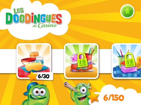 Pour découvrir de nouveaux univers, réalise un sans faute sur tous les niveaux de lunivers précédent ou scanne les code-barres des produits Doodingues de Casino avec ton iPad ou ton iPhone !