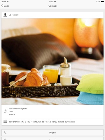 Lapplication de lHôtel Restaurant Le Riccoty qui se situe à Blyes à 40 km de Lyon, 3 km de la Plaine de lAin, dans un charmant petit village où vous trouverez calme, repos, et un environnement détente au cœur de la nature sur un site de 4ha, va vous permettre notamment de recevoir les actualités, de visualiser les photos et la visite virtuelle de létablissement, de bénéficier dun programme de fidélité, et bien plus encore...