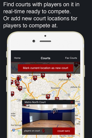 Where the real ballers at! Check the map (Courts) on League For Basketball to get realtime info of how many players are checked-in at courts nearby. No more showing up to play ball and no one is there. And you can discover new places to play that you never knew about before. Receive notifications when players are checking in at your favorite courts.