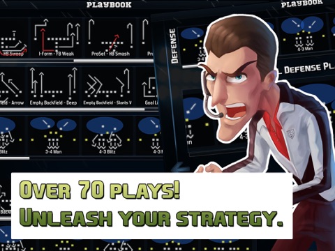 Compete in full seasons, sign on new players, modify your playbook, and take home the championship cup! Field goals, punts, touchdowns, kick offs, interceptions, fumbles, and substitutions are all in the game. Change out tired or injured players with intuitive depth chart management. Sign on new talent and nurture their development!