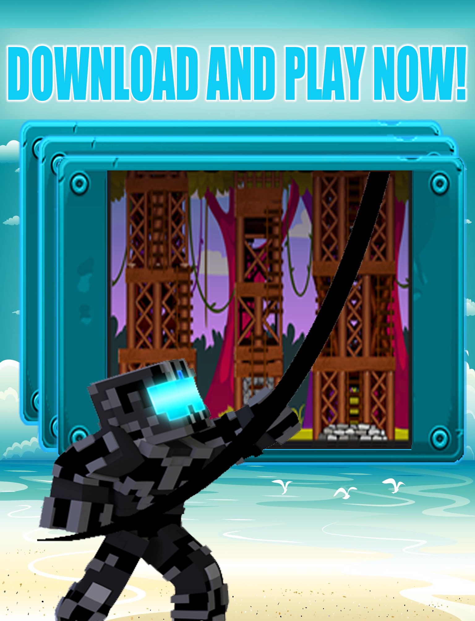 Use your ropes to swing a destructible character from one skyscraper to the others. You have full control over your ropes, touch on a building to throw your rope there, touch again to release it and fly through the sky. Perform various kind of jumps to get achievements, attach to flying planes or ballons and try to beat your friends or all other players by competing with them for the best score.