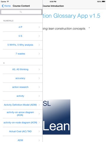 An on-the-go app for browsing construction lean concepts. The app contains more than 300 lean terms used in Lean Construction. The contents of this app is provided by Project Production Systems Laboratory at UC Berkeley.
