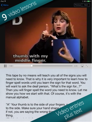 Learn American Sign Language is a simple and fun way to learn signing, covering such useful topics as Greetings, Emergency Situations and more. In 9 easy-to-follow video lessons, professional sign language interpreter Renee Moore will teach you the basic skills needed to communicate with deaf friends, family, customers and co-workers.