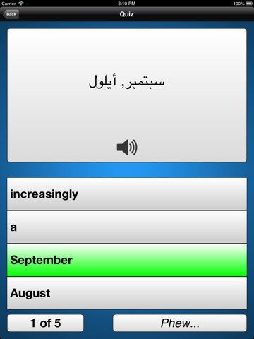 ► Choose whether to view or quiz on the Arabic or English