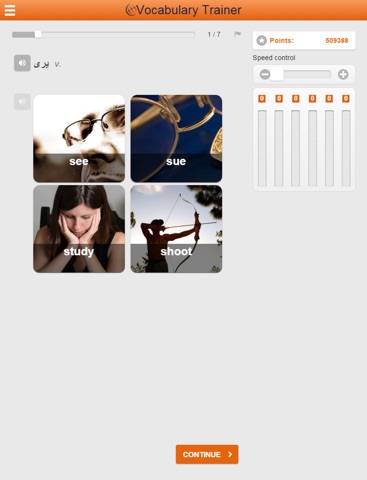 This app is designed for rapid learning of vocabulary and phrases.