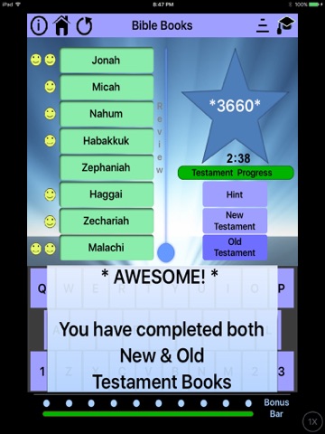 the books of the Bible, while receiving positive visual and audio