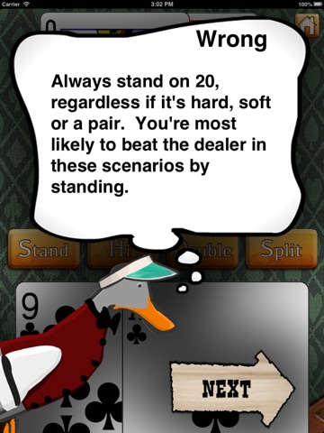 The tips and quizzes are helpful, but the most frustrating thing is the practice odds. The dealer wins or its a push 95% of the time. So even if you are making "the right decisions" you still get slapped. Its a little ridiculous. Im inclined to agree with others....download a free app and use a cheat sheet printed off the internet.