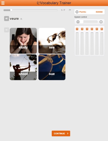 This app is designed for rapid learning of vocabulary and phrases.