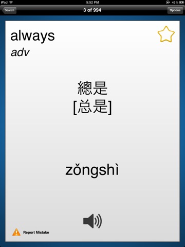 ► Choose whether to view or quiz on the Chinese (Traditional or Simplified) or English