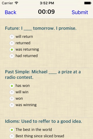 This is a 2 in 1 grammar app since it also offers you the possibility to learn the basics of English language through its Learning section.