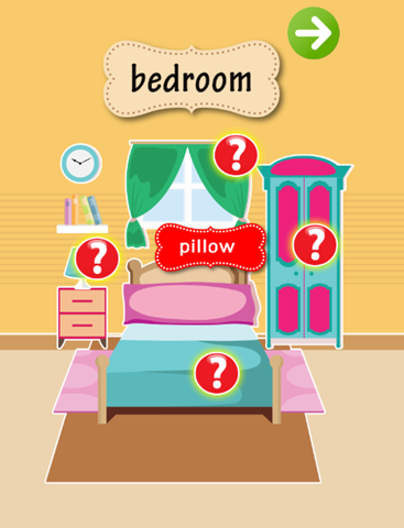 Learn the vocabulary about bedroom. There are pictures and sound, make the child easy to understand.