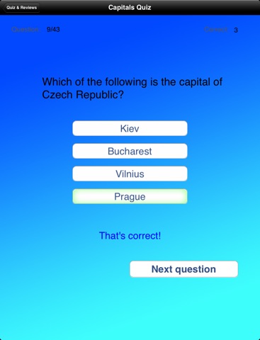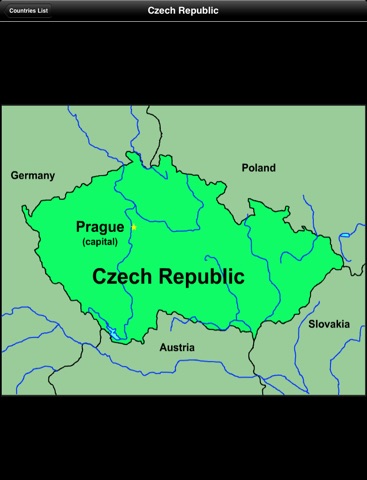 The Capitals section has a colorful detailed map for each of the 44 countries including the capital city name and its location within the territory. With the display of each map, the name of the country and capital city are narrated for the student to hear the proper pronunciation. To obtain more detailed information about any of the countries, the student only needs to tap the image of that country and they will be directed to a related Wikipedia.com online encyclopedia page.