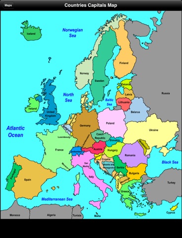 Our Learn Europe Countries and Capitals App is an easy-to-use tool for learning the names of 44 different countries of the continent of Europe along with their capital cities. The program features a Maps section, a Capitals Section, and a Quiz section. The maps section has easy to read maps of the continent with the country names and the country abbreviations.
