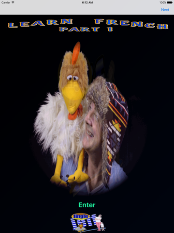 Professor Giggle tells you the English word with colourful flashcards and you have to try and guess the French word associated with it. Once youve guessed, press the flashcard and it will flip over to reveal the French word. At the same time Jingle Jeff will pronounce the French word to help you.