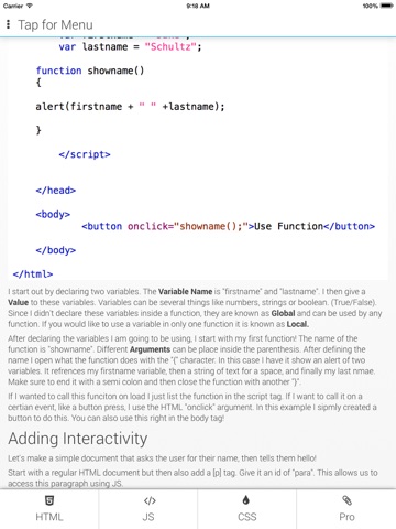 This is the perfect app for anyone with no prior knowledge. We will start out by explaining some basic HTML and then move into some CSS and Javascript.