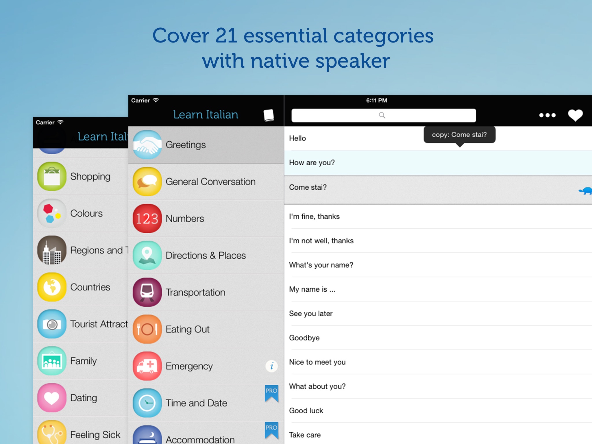I was looking for an app that helps you with Italian and when I found this app it was so cool and I love go it talks to you when its saying the word or sentence thanks !!!!!!!!