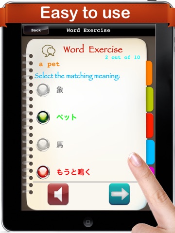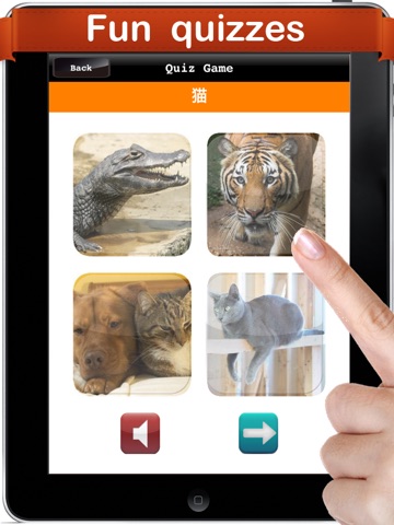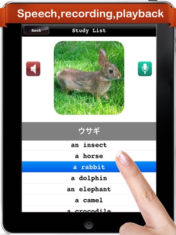 Learn section: You will learn the name and pronunciation of a word as you slide across the screen.Every word is pronounced in both Japanese and English.