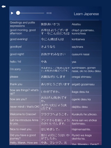 Learn Japanese Plus is an easy to use mobile Japanese audio phrasebook and dictionary for beginners that will give visitors to Japan and those who are interested in learning Japanese a good start in the language.