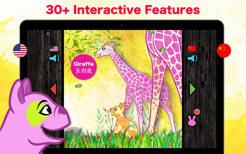 With striking and colorful graphics and animations, this FUN interactive app is designed to delight children while they learn animal names in Mandarin (Chinese) and English!