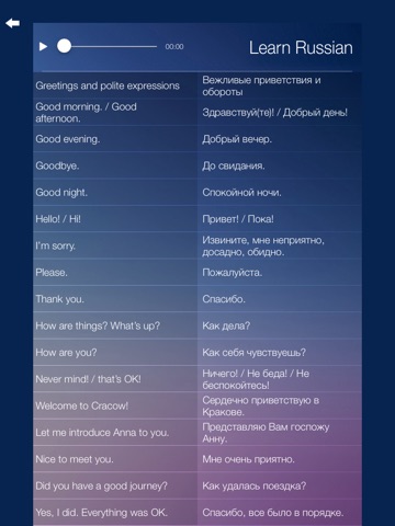 The most essential words and phrases of the Russian language, each with native speaker audio. Perfect travel app!