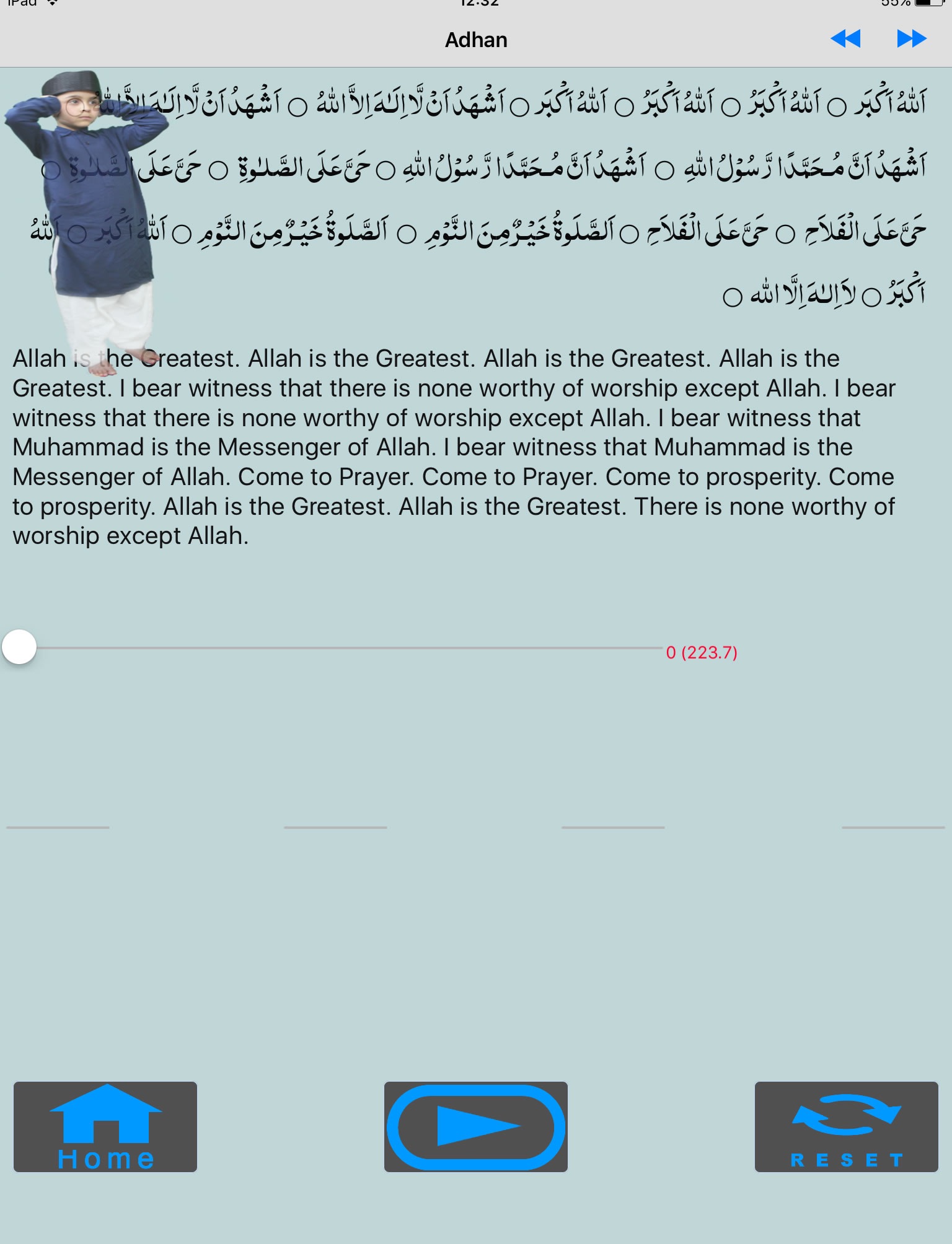 Learn Salat is an interactive app which will help children or new comers to Islam to learn and memorise the Arabic wordings of the Salat. Learn the meaning of the Arabic text of the Salat