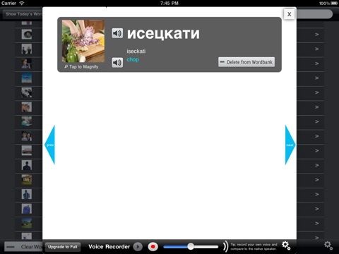 - Word Bank Flashcards with Audio: Instantly review Word Bank entries in Flash Card form