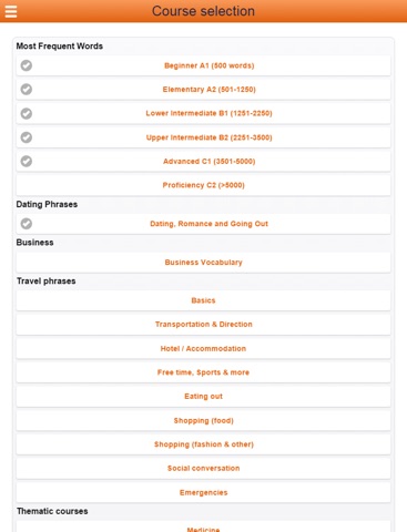 ► Add your own vocabulary lists: If you are taking a course at a school, university or private academy, you can add the words from your textbook and learn them here instead of looking them up in a dictionary.
